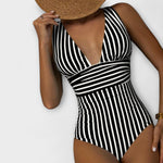 ¡Descubre el traje de baño AURORA a rayas para damas! La combinación perfecta de estilo y comodidad para la playa y la piscina.