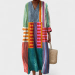 Este vestido maxi es una verdadera declaración de estilo para quienes aman la moda con personalidad. Con un corte holgado, mangas 3/4 y escote en V, ofrece comodidad y autenticidad en cada detalle. Su audaz look artístico convierte cualquier ocasión en una pasarela privada, ya sea para un paseo relajado o un evento informal. Combínalo con sandalias o zapatillas y lúcelo con actitud y originalidad.